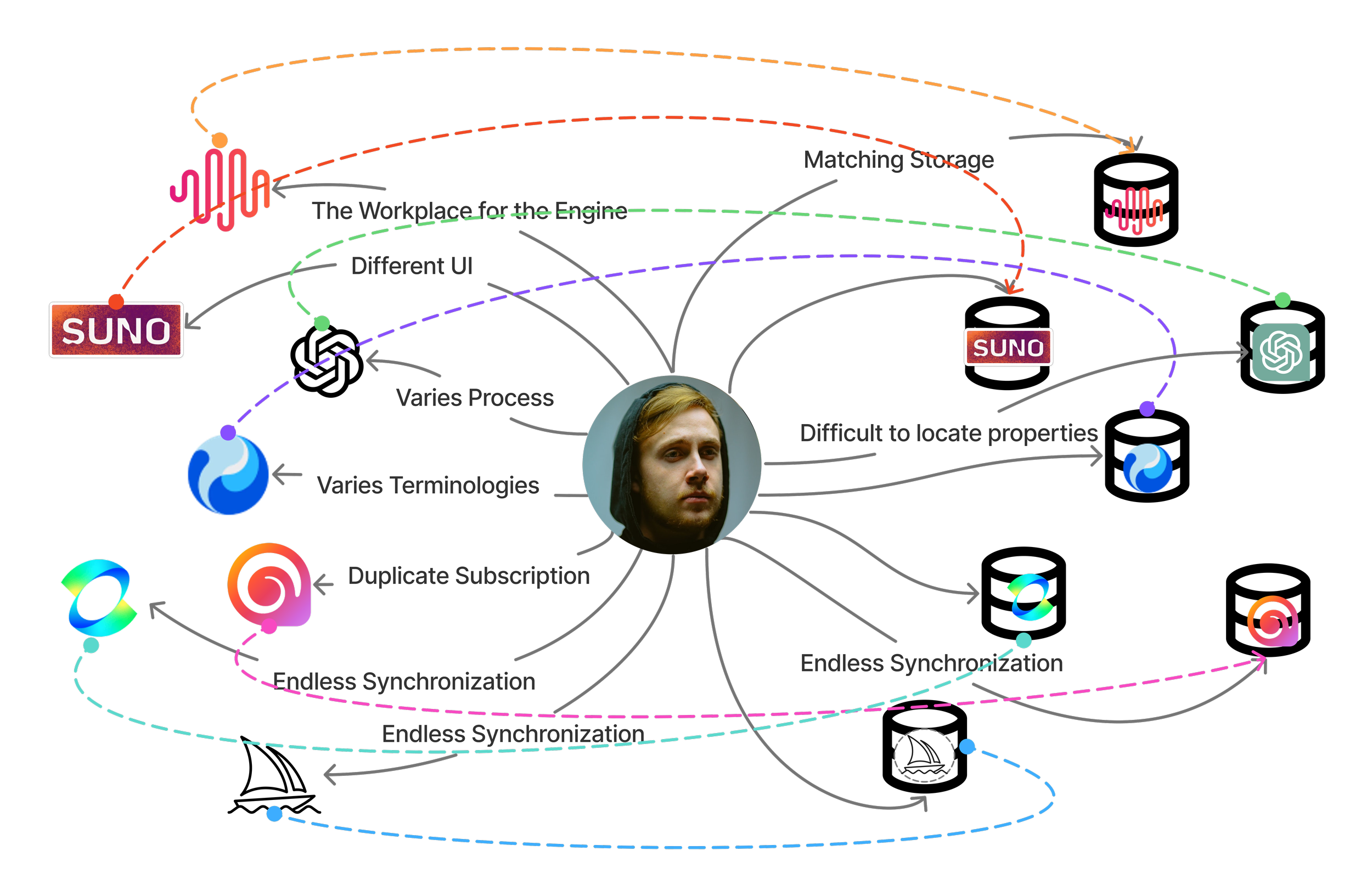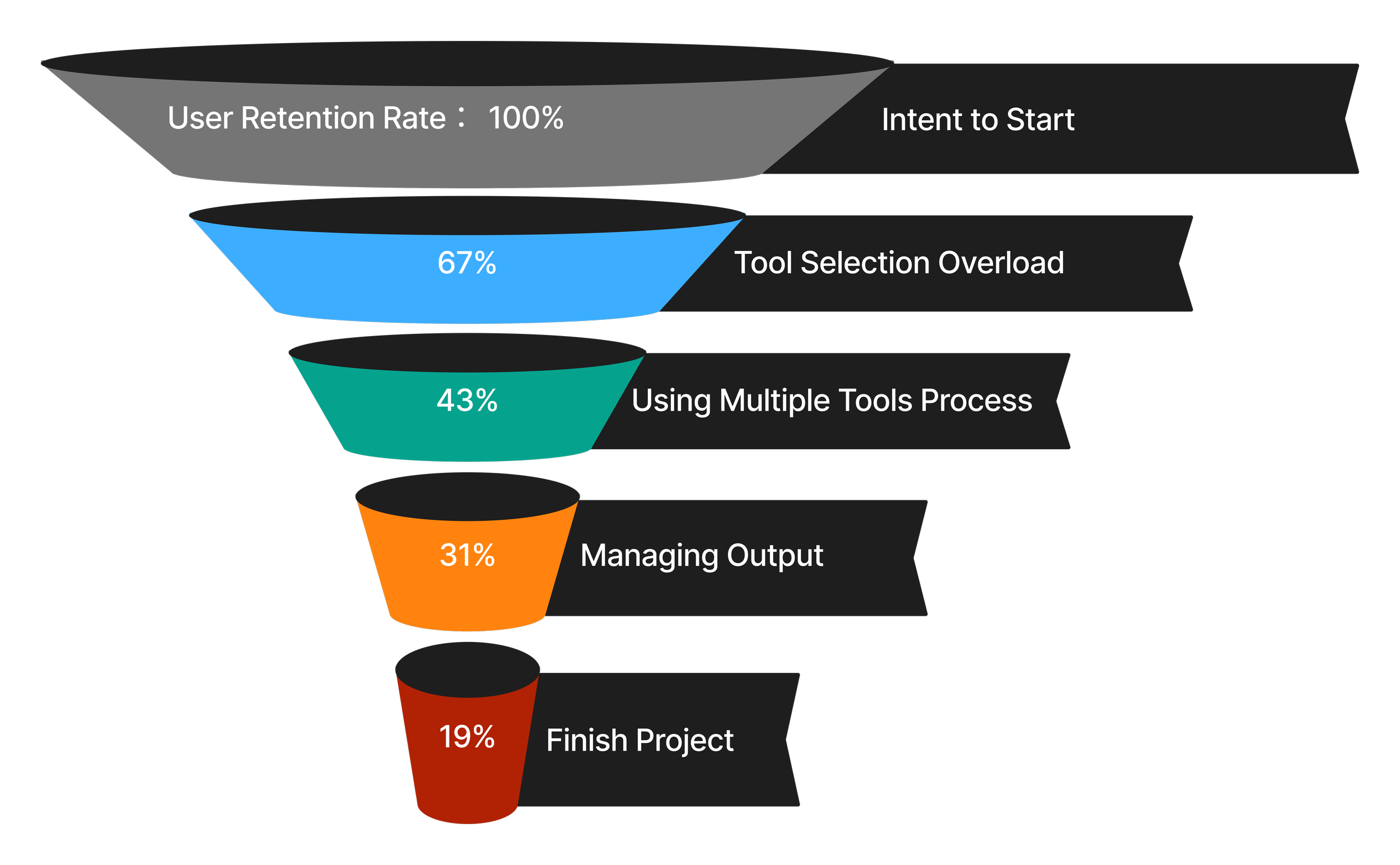 This constant tool-switching caused context loss, repeated uploads, and scattered outputs—disrupting creative flow.